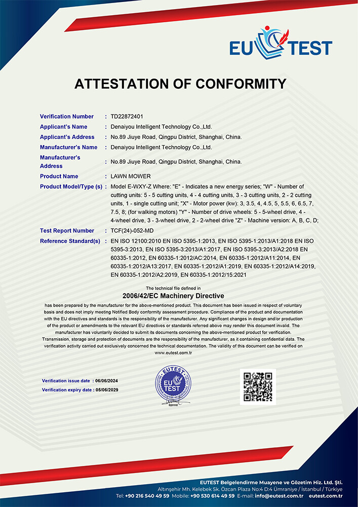 Denaiyou Intelligent Technology always adheres to a customer-centric approach, offering affordable,efficient and eco-friendly turf maintenance equipment through continuous technological innovation and stringent quality management. Looking ahead, we will continue to drive industry development and become a leading enterprise in the global turf maintenance equipment sector.